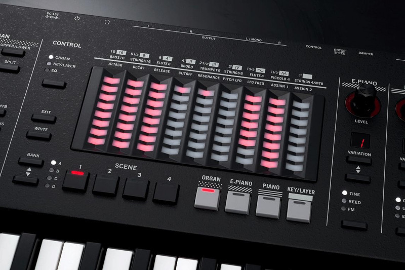 Draw bar, Percussion ON/OFF, Split function, Vibrato/Chorus ON/OFF, Rotary Speaker ON/OFF)
