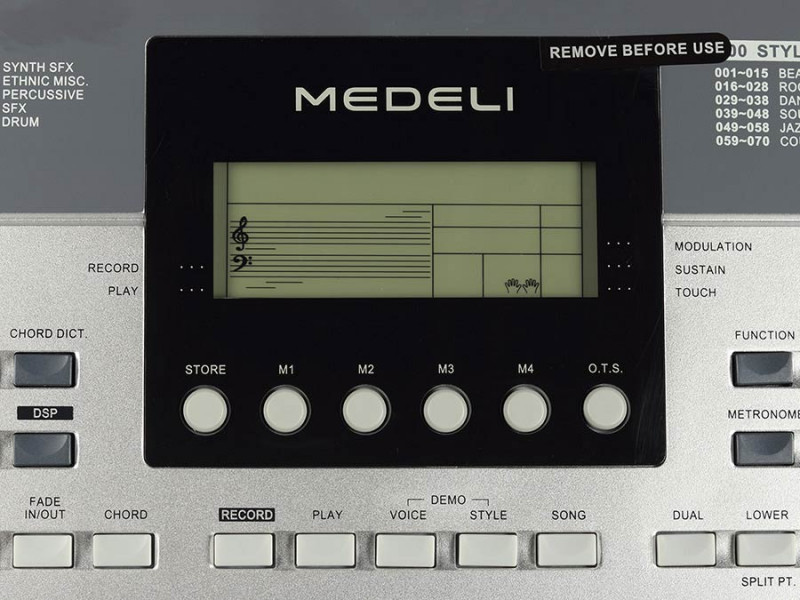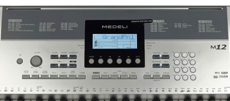 Medeli's M12 keyboard heeft 61 aanslaggevoelige, fullsize toetsen, 320 klanken en een DSP effectsprocessor. Het heeft een LCD-display waar je de verschillende functies van het keyboard terug kan vinden. Voldoende (vinden wij) voor veel speelplezier en goed als lesinstrument.