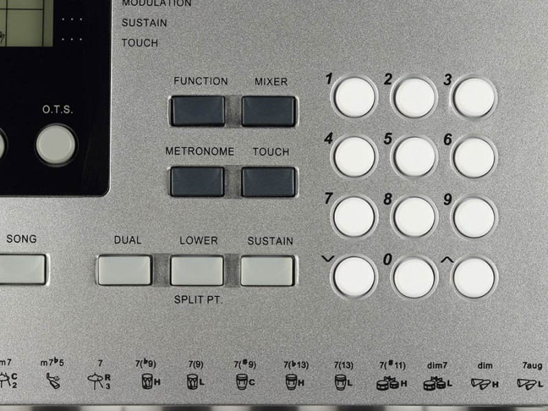 The M12 beschikt over 100 begeleidingen. Je kunt de simpele interne sequencer gebruiken om de gespeeld songs op te nemen, en achteraf terug te luisteren.