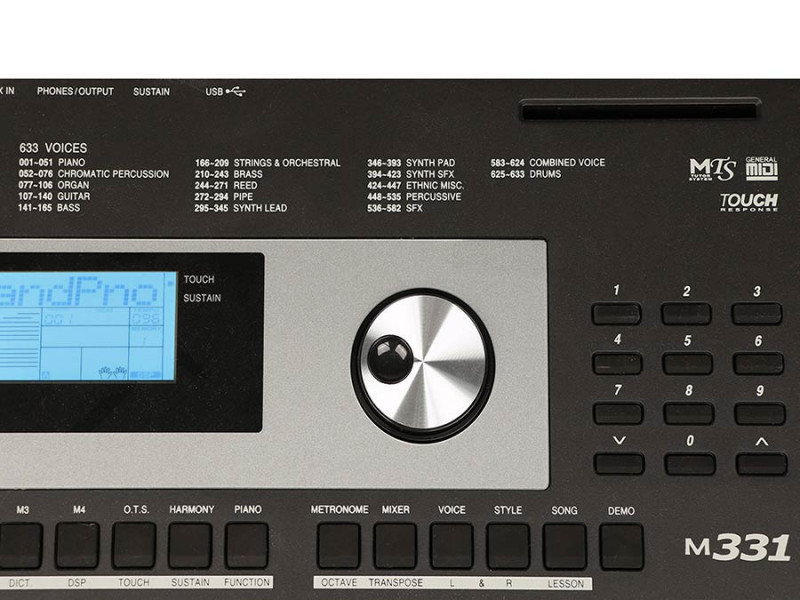 De M331 is een goed keyboard voor de beginnende muzikant. Om de speler de beste muzikale ervaring te geven kan gebruik gemaakt worden van 633 klanken en 220 styles. Hiermee kan de bespeler oneindig experimenteren.