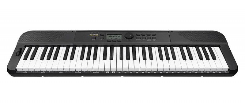 Het NUX NEK-100-toetsenbord belichaamt het toppunt van NUX's geavanceerde technologie en levert een uitgebreid en handig instrument voor op het podium, buitenshuis en thuis. Dit compacte en lichtgewicht keyboard wordt aangedreven door een interne oplaadbare batterij of een meegeleverde 12V-adapter en biedt een uitgebreid scala aan geluiden, stijlen, effecten en begeleidingsopties, samen met een unieke Live Music-modus voor een verbeterde speelervaring.