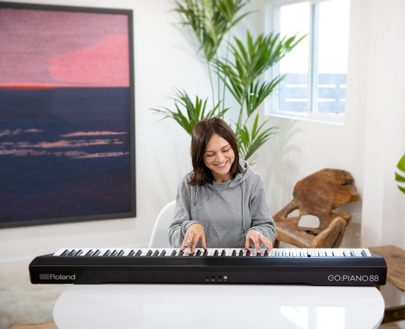 Maar de GO:PIANO88 van Roland voorziet die allebei. Licht en klaar voor gebruik, met optionele batterijvoeding en hoofdtelefoon: dit mobiele instrument beschikt over een volledig klavier van 88 toetsen, en sounds die afgeleid werden van Rolands beste digitale piano's.