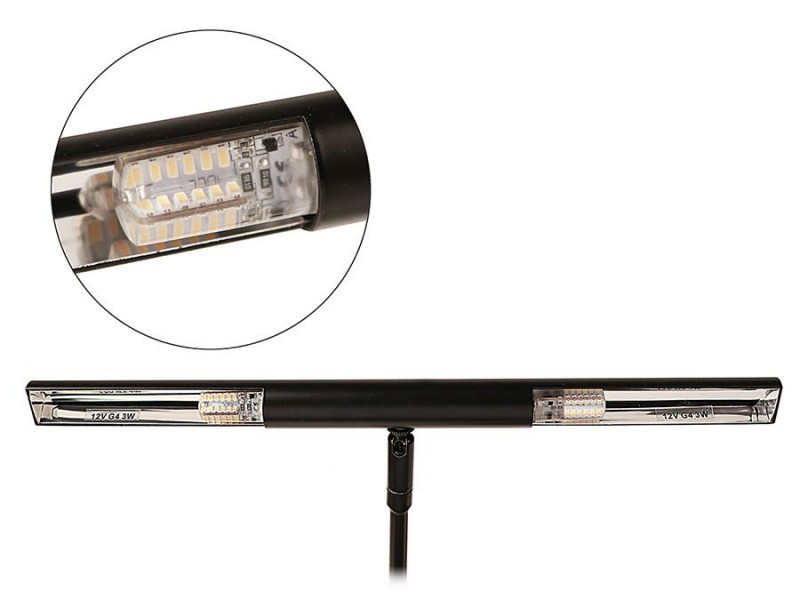 Moderne zwart matte pianolamp. Deze lamp is voorzien van 2x G4 3watt siliconen lampjes met ieder 48 LED's en geven warm wit licht van 3000k.