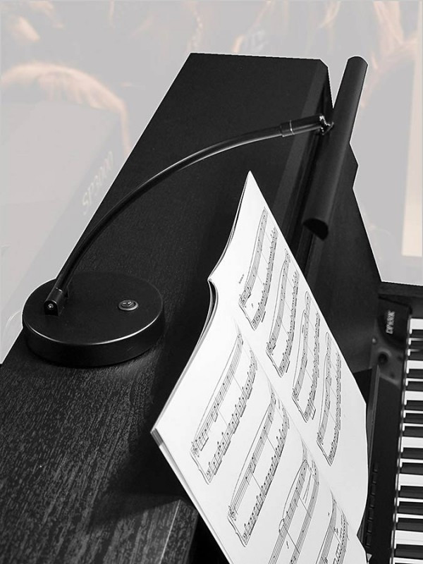 De verzwaarde voet met vilt onderkant zorgt er voor dat deze lamp stevig en krasvrij op de piano staat.