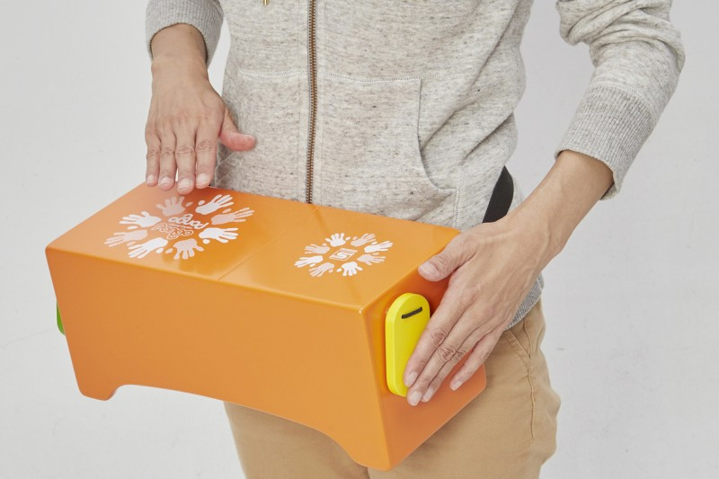 De kleurrijke Laptop Pongo van het Japanse merk Suzuki is een bongo cajon die je dankzij de meegeleverde draagband om je nek kunt dragen.