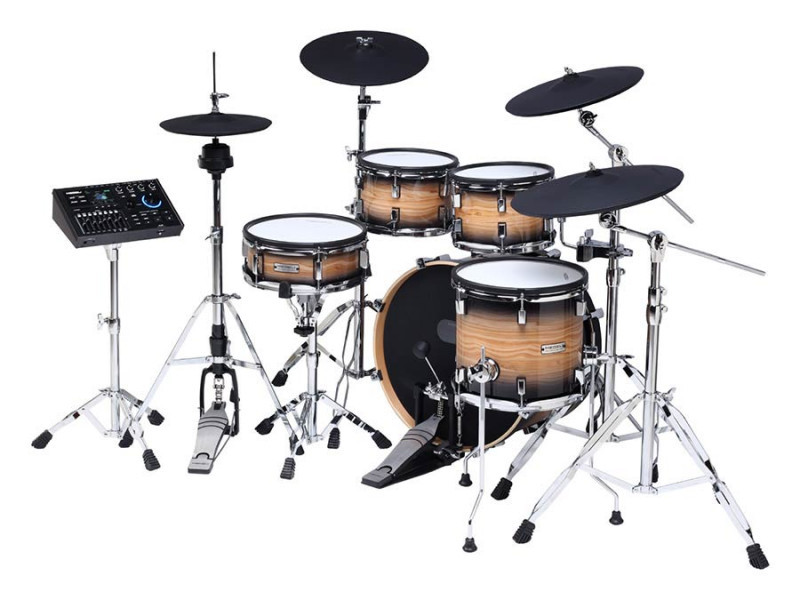 Digitaal drumstel, volledig gaasvel, houten ketels, XXL-opstelling, alle hardware inbegrepen, in de kleur Tobacco Sunburst.