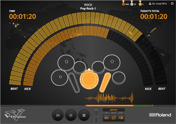 •De oefenresultaten worden weergegeven in de vorm van wereldrankings, wat het oefenen leuker maakt. Drummers kunnen ook hun oefenresultaten op Twitter zetten.