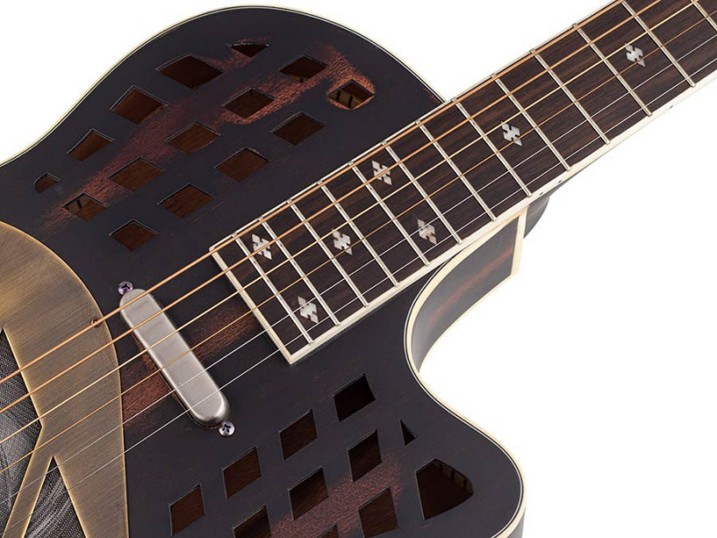 12 fret resonator CHESS CUTAWAY 12 SC, wooden body (okoume) brown sand finish, with softcase
