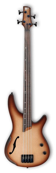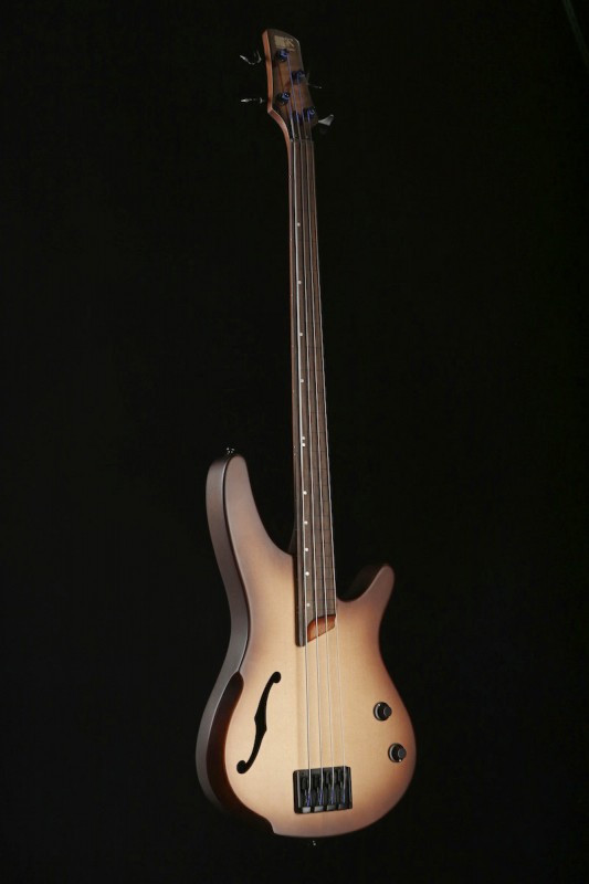De Ibanez SRH500F fretloze heeft een slanke semi hollow body, geleverd met een set van Flatwound snaren.