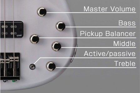 Controle: active/passive 3-band EQ, Volume,Balance,