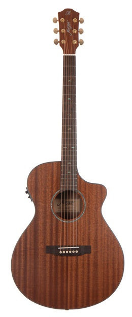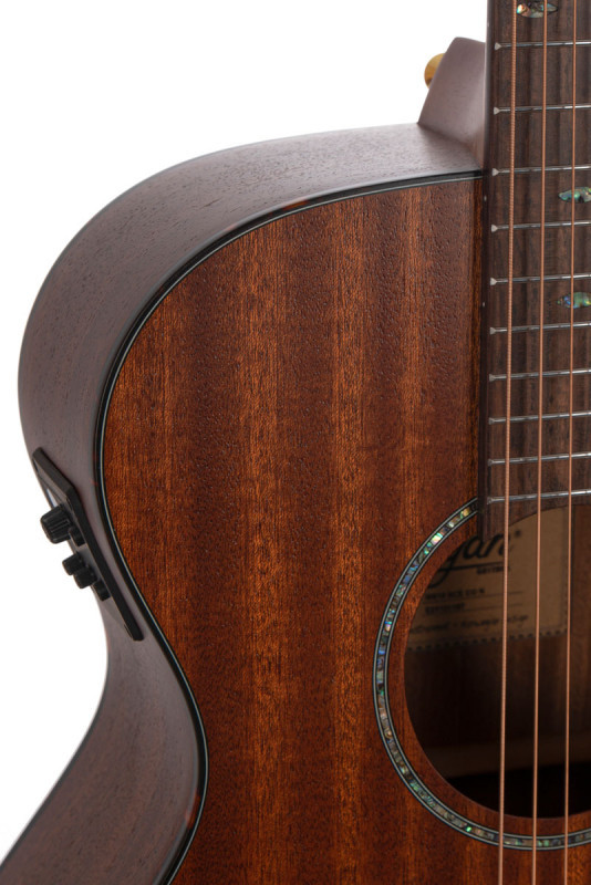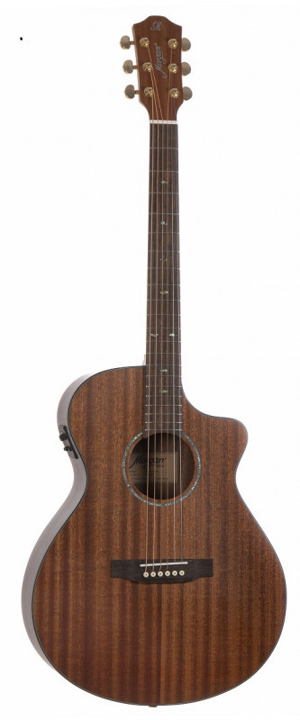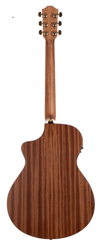 De W619SCE is een geweldige westerngitaar met een body van concertformaat, "flat slope venetian cutaway", massief mahonie in het bovenblad en sapelli in de rand en onderkant.