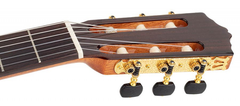 Zoals alle Salvador Cortez gitaren, heeft ook de CC-60CE een halspen waarmee de curve van de hals in te stellen is Een garantie voor een goede bespeelbaarheid, ook over vele jaren nog.