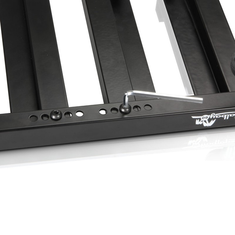 Universele aluminium pedaalbord voor de opslag van alle gebruikelijke vloer effecten. De dwarsbalken en de hoogte en kanteling van het pedaalbord individueel instelbaar. De dwarsbalken zijn al bedekt met klittenband (vlies), is een voldoende hoeveelheid van de haak riem ook inbegrepen. Voedingen en soortgelijke randapparatuur kan onder het bord geplaatst worden. Voor deze de Pedalboard beschikt over 4 praktische haken aan de onderzijde. 2 elastische banden worden geleverd - het maken van fixatie gemakkelijk!