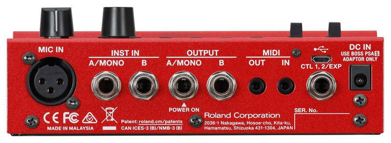 • Mono / stereo-ingangen voor eenvoudige pedaalbordintegratie, plus onafhankelijke XLR-microfoon ingang met fantoomvoeding