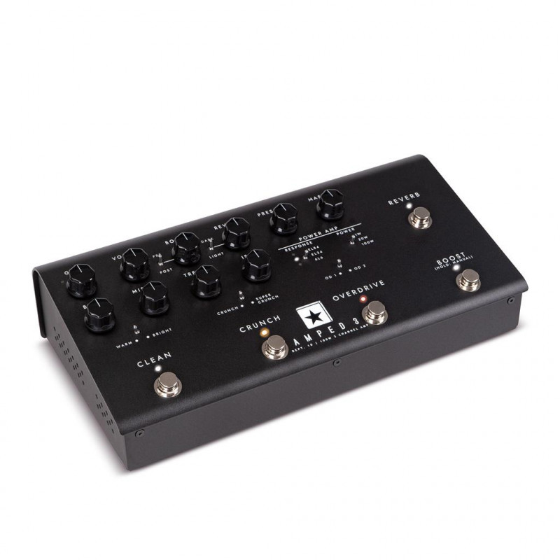 AMPED 3 is een 100 Watt "high-gain" pedaalversterker met 6 voicing opties en 3 programmeerbare kanalen met "Reverb". Perfect voor gitaristen die op zoek zijn naar de "ultra high-gain" tonen, die te vinden zijn in multi-kanaals buizenversterkers zoals Series One.
