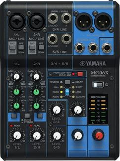 De Yamaha MG-06X is een 6-kanaals mixer met 2 mic / 6 line inputs (2 mono + 2 stereo) en 1 stereo bus