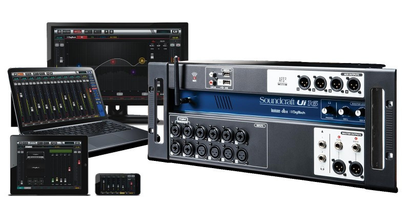 De Soundcraft Ui16 rack mixer kunt u op het podium plaatsen en hem vervolgens draadloos of via een UTP kabel bedienen met u OS/Android/Windows/Mac OS en Linux smartphones, tablets en pc/laptops bedienden.