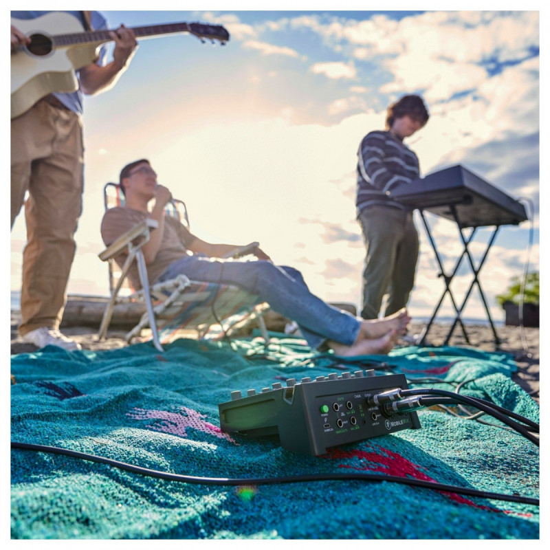 De Mobile Mix is compact en draagbaar en wordt gevoed door een oplaadbare USB-batterij (apart verkrijgbaar), zodat je deze volledig uitgeruste audiomixer overal mee naartoe kunt nemen. Hij is compatibel met DSLR-camera's, PA-systemen en zelfs streamingopstellingen voor smartphones, zodat je altijd verzekerd bent van een geweldige geluidskwaliteit, waar je ook bent.
