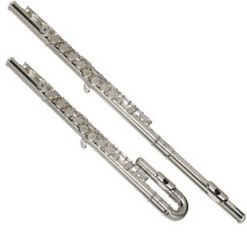 Dwarsfluit, verzilverd met teruglopende kop, E-mechanisme, Pisoni polsters, met softcase