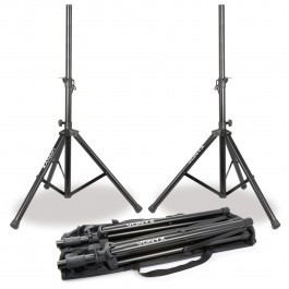 De twee luidsprekerstatieven zijn gemakkelijk op te zetten en eenvoudig te vervoeren door de handige meegeleverde draagtas. De veiligheidspin zorgt voor maximale stevigheid en zekert de statief, zodat deze niet kan inzakken