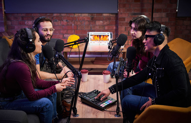 Ingebouwde stereomicrofoon en vier hoofdtelefoonuitgangen met speciale EQ's