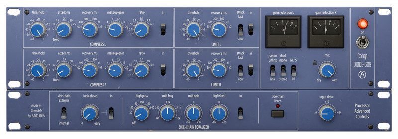 Comp DIODE-609 - Based on the iconic Neve™ stereo compressor and limiter with a distinctly characterful crunchy response - great for drums.