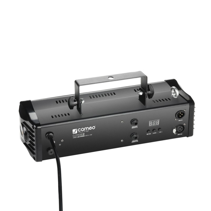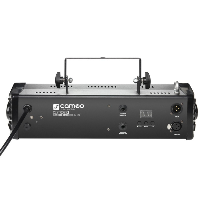 De Cameo CLSTROBE2 is a high-power LED stroboscoop voldaan six 10 - watt wit COB LED 's en 80 ° stralingshoek VOOR Grote dekkingsgebied . Het Staat VOOR DMX , slaaf en alleen use ontmoette strobe , dimmer en Geluid Activering modi . De Flitser rate is instelbaar van 1 tot 20 flitsen per seconde for a intense stroboscoop effect . Mode , Value Up en Omlaag Toetsen nl EEN 3 - cijferig LED - scherm gemakkelijk can handbediening .