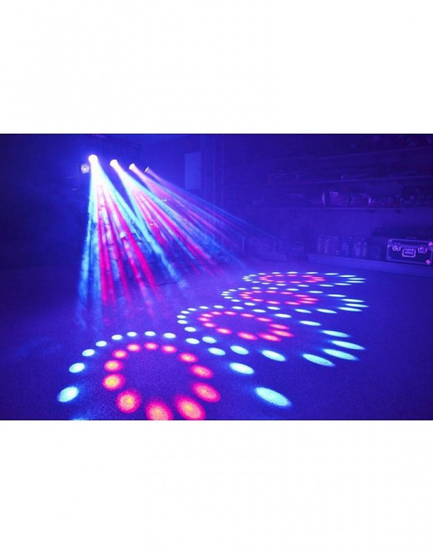 Deze 4-Some LED lichteffectset bestaat uit 4 LED Moonflowers en is zeer eenvoudig te installeren vanwege de meegeleverde T-bar. De 4 units kunnen afzonderlijk van elkaar gericht worden en worden aangestuurd door 7 DMX-kanalen. Elke unit heeft 57 RGBW LED's die een hoge lichtopbrengst hebben en prachtige figuren kunnen projecteren. Voor eenvoudig gebruik kunnen de units ook werken op een voorgeprogrammeerd programma of reageren op de muziek. Tevens is een master/slave-setting mogelijk waarbij alle units exact hetzelfde doen. De T-bar past op alle 35mm lichtstatieven waardoor deze 4-Some lichtset de perfecte keuze is voor mobiel gebruik.