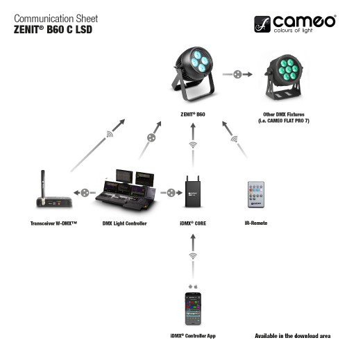 Controle via W-DMX ™, DMX, RDM, IR afstandsbediening of display