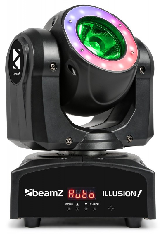 Een zeer compacte maar krachtige en extreem snel bewegende moving head Beam met effect LED-ring. De zeer heldere 60W RGBW LED produceert verzadigde primaire kleuren, subtiele pasteltinten en natuurlijke tinten wit. Deze Illusion 1 is eenvoudig in gebruik en is een fantastische aanwinst voor uw lichtshow. De ring is aan te sturen in 3 cellen van 4 secties. Geschikt voor bars, clubs, mobiele DJ's en op podia.