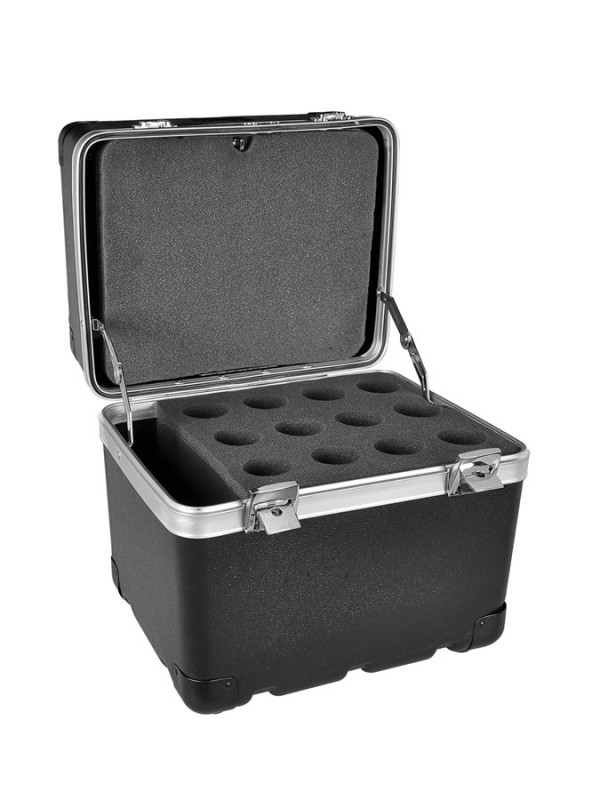 luxe ABS microfoon hardcase voor 12 microfoons, diecast sluiting, aluminium valance, foam interieur