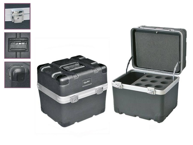 deluxe ABS microfoon hard case, 9 microfoon diecast latches, aluminum valance, foam interieur!